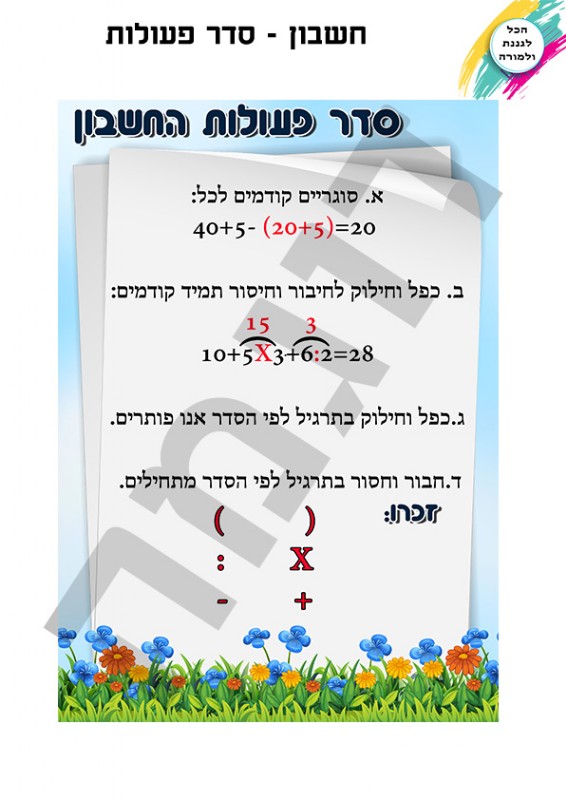 סדר פעולות החשבון דגם ב